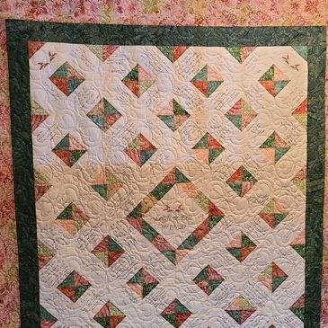 Three Bees Quilting LLC specializes in two main areas: longarm machine quilting to finish your treasured quilts, and the creation of one-of-a-kind celebration, signature, T-Shirt, or memory quilts.