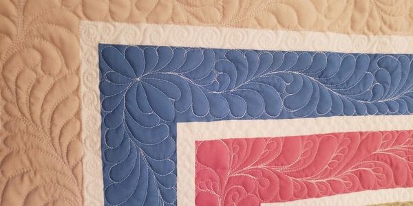 Available services for machine quilting include all-over, or edge-to-edge pantograph quilting. There are a variety of pantograph designs available for you to choose from to complete your quilt. These designs will be stitched across the entirety of the quilt without regard for blocks, or borders. Thread choices include polyester or cotton threads in solid or variegated colors to coordinate with the colors in your quilt.